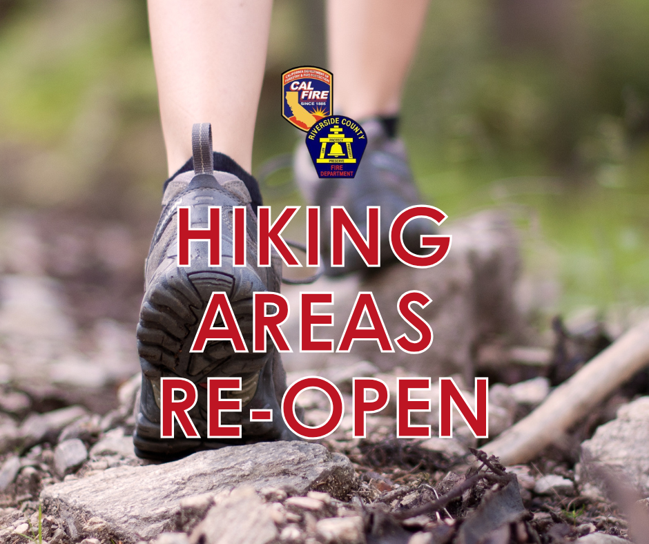 FIRE CHIEF RE-OPENS SIX HAZARDOUS HIKING AREAS THROUGHOUT RIVERSIDE COUNTY